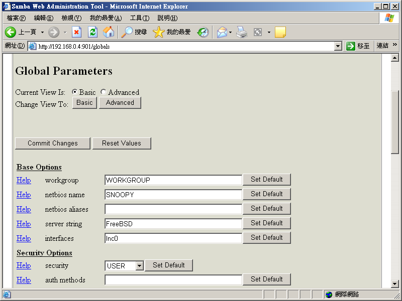 除了使用文字编辑软件来修改 smb.conf 并用命令列工具设定使用者数据外,我们可以使用 Samba 内建的网页接口工具来进行设定。我们在编辑 smb.conf 时,如果要使用中文数据夹名称时,由于数据夹名称是 Unicode,我们必须使用 Word 来编辑。但如果我们使用 Samba 的网页接口工具,预设就是 UTF-8 了,在设定上会容易许多。