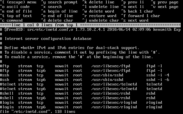 services to be enabled, including finger, ftp and telnetd. Enabling